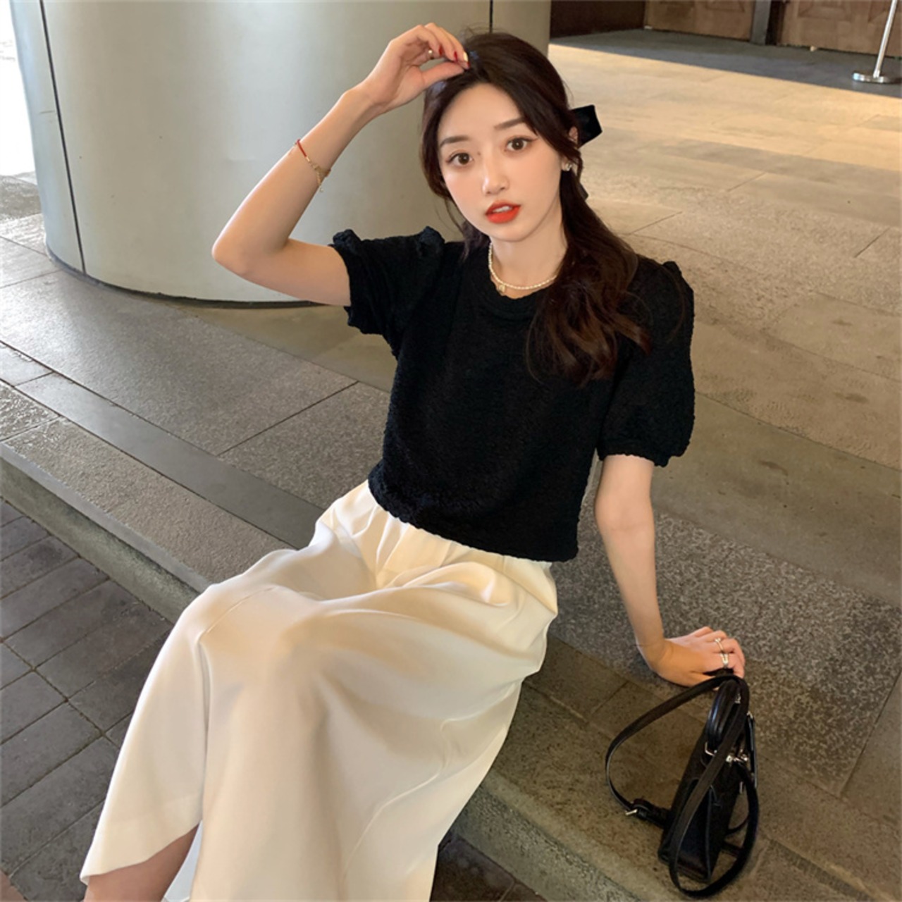 sweet系 トップス 半袖 気質 肌にやさしい ラウンドネック お出かけ 蝶結び