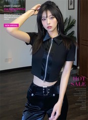 待望の再入荷です 縫付 ジッパー カーディガン Tシャツ トレンド デザインセンス 半袖 トップス