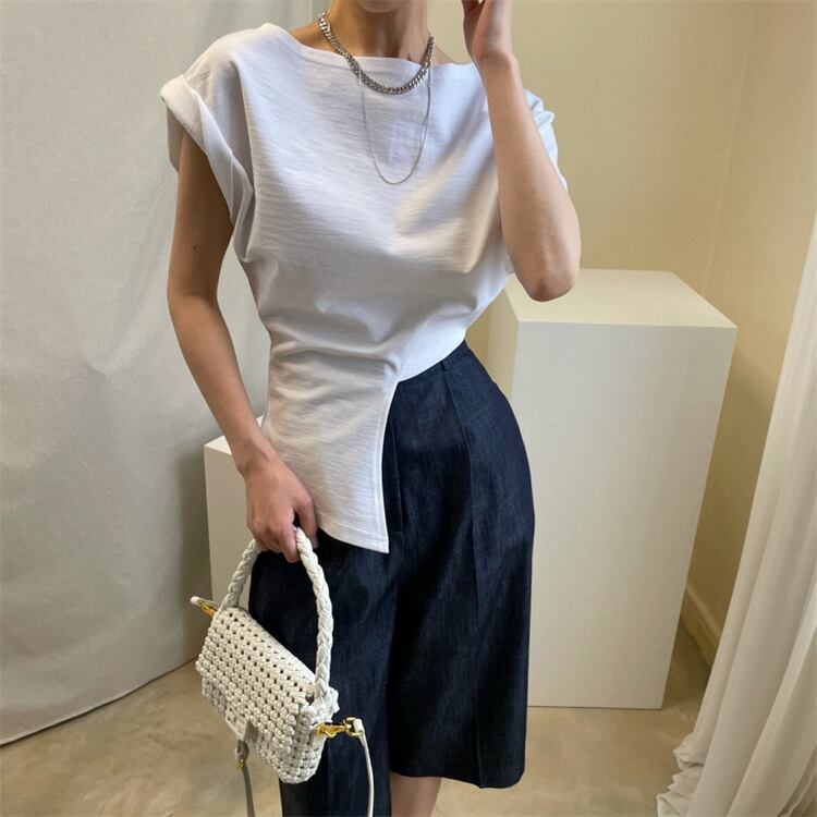 注目になる印象 カジュアル トップス Tシャツ 半袖 上着 イレギュラー スプリット スリム