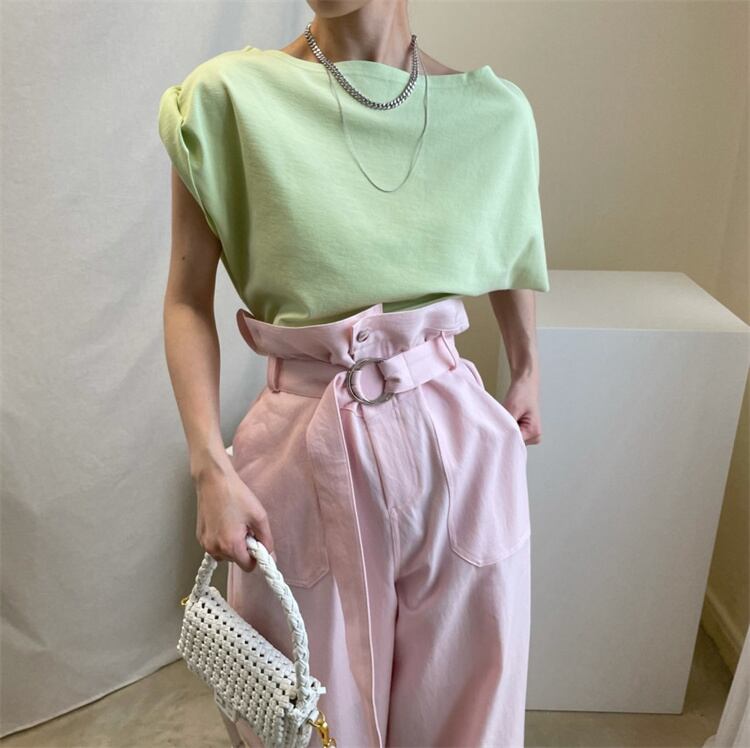 注目になる印象 INSスタイル カジュアル トップス Tシャツ 半袖 上着 イレギュラー スプリット スリム