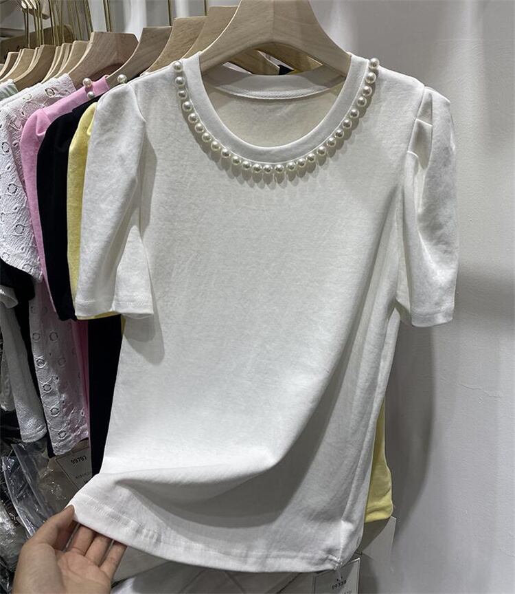 品質良い!店舗お勧め! 快適である パール 半袖 Tシャツ スリム デザインセンス トップス 2022年夏 新品