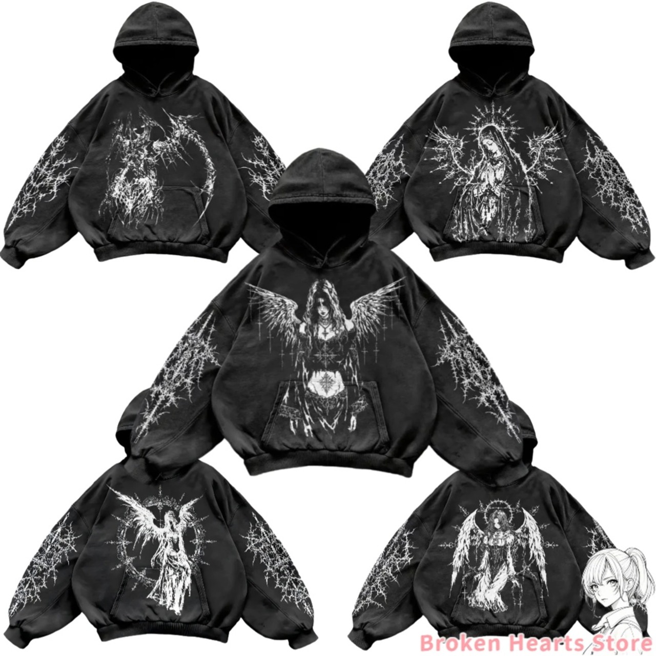 女性用フード付きスウェットシャツ,フード付きスウェットシャツ,フード付きスウェットシャツ,カップル服,原宿,y2k,ゴシック,パンク,新作 パーカー ジャージ y2k T240908141613_07