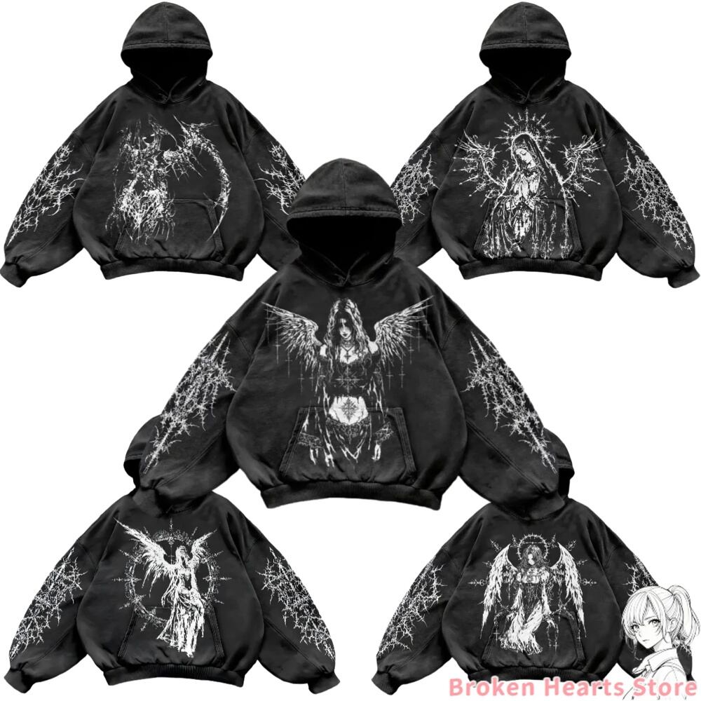 女性用フード付きスウェットシャツ,フード付きスウェットシャツ,フード付きスウェットシャツ,カップル服,原宿,y2k,ゴシック,パンク,新作 パーカー ジャージ y2k T240908141613_13