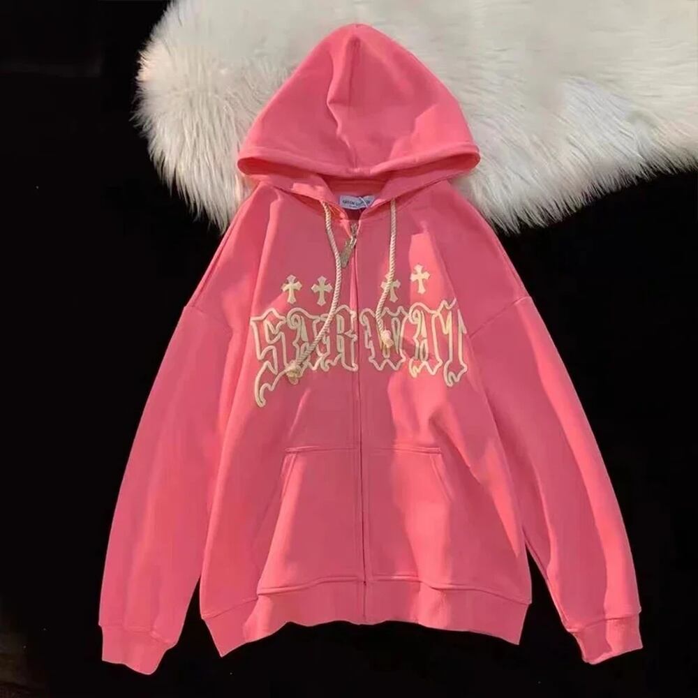女性のレトロなヒップホップフーディ,ジッパー付きのゆったりとしたスウェットシャツ,フード付きジャケット,ストリートコート,y2k服,素晴らしいオファー,ファッション パーカー ジャージ y2k T240908163923_02 | gizshop