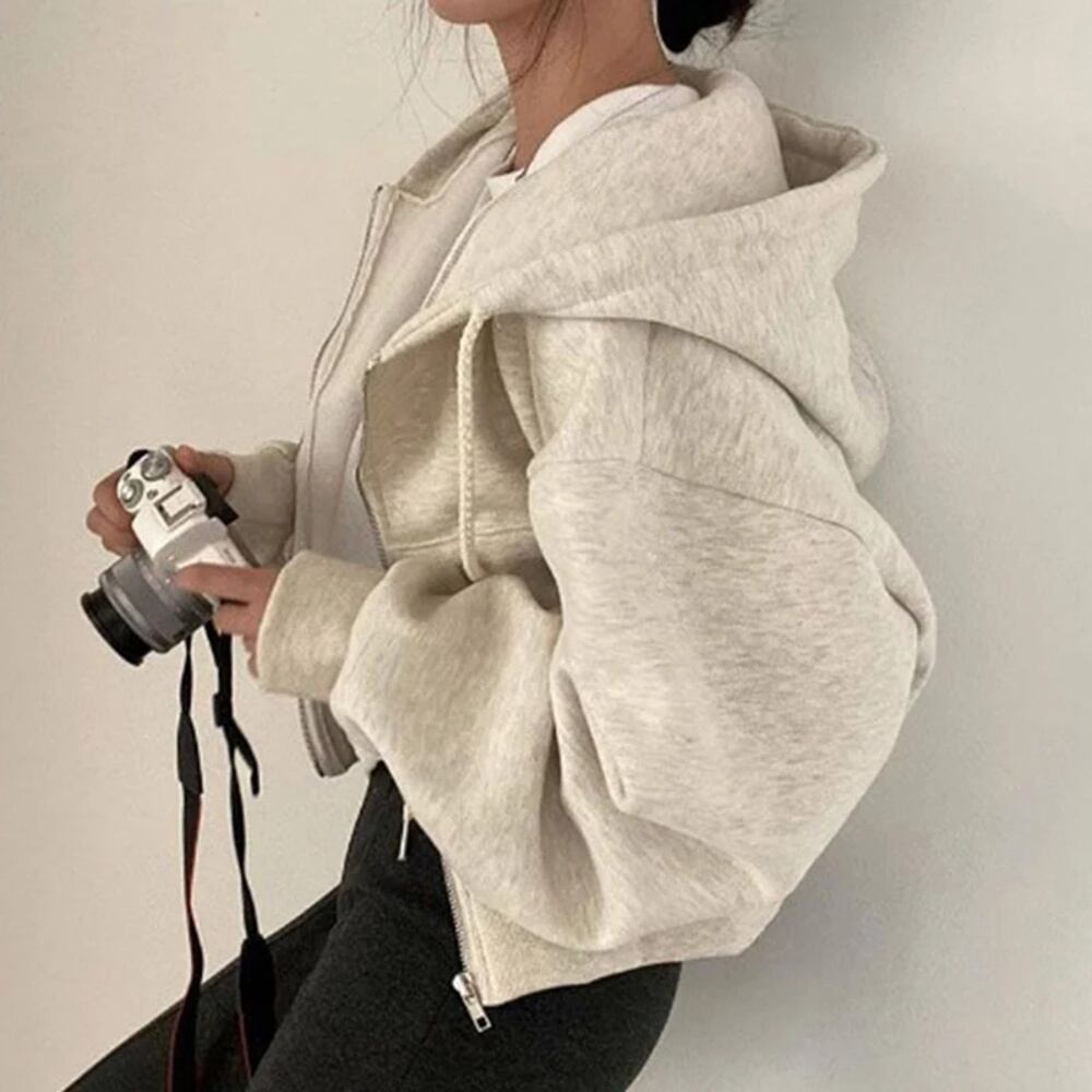 女性用カジュアルジップアップパーカー、無地、ルーズクロップトップ、ストリートウェア、スウェットシャツ、韓国フード付きジャケット、コート、y2k、秋、冬、2021 パーカー ジャージ y2k T240908164403_06 | gizshop
