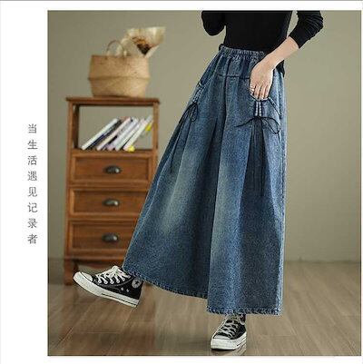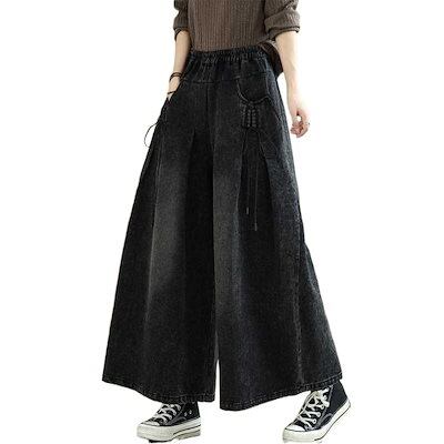 「ファットガール」 2024秋冬新品 デニムパンツ 大きいサイズ 体型カバー レディース ジーンズ ゴム ワイドパンツ ロングパンツ ハイウエスト メガ割