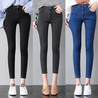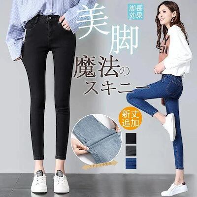 大人気 デニムパンツ 秋 新作 パンツ デザイン感ファッション春ズボンスキニーハイウエスト ロングパンツ/9分丈/8分丈選べるタイトパンツワイドパンツジーンズ カジュアルストレッチ效果 レディース 脚